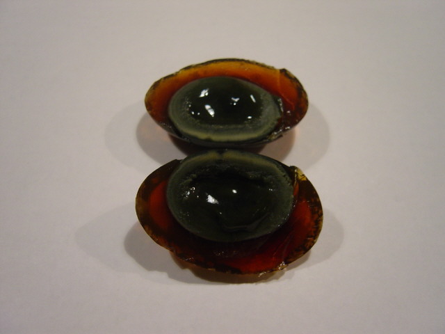 “It tastes like a gelatinous hard boiled egg. And I’m not an egg eater. I’ve got a strong stomach, but the texture of a hard boiled egg makes me want to throw up,” Schuck says. His secret to consuming the 1,000 year-old-egg: “It helped to get it down with a shot of scotch.”