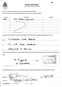 Really, it was about as pleasant an experience you can have when you are being questioned about brining an illegal substance into another country. I almost expected to be offered a spot of tea. Officer Szczyrek gave me copies of the forms and then pointed me back to the Customs screening area.