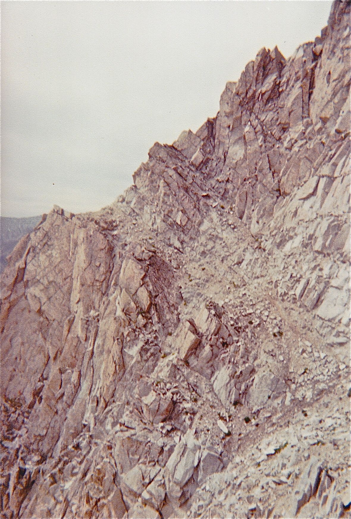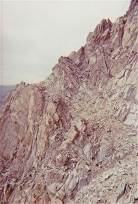 While making my way, I hugged any jutting rock cluster, trying to ignore the fact that when small rocks became dislodged and fell, you did not hear them land. Occasionally, you would hear one skitter down the side for a few feet and then there was nothing but silence.