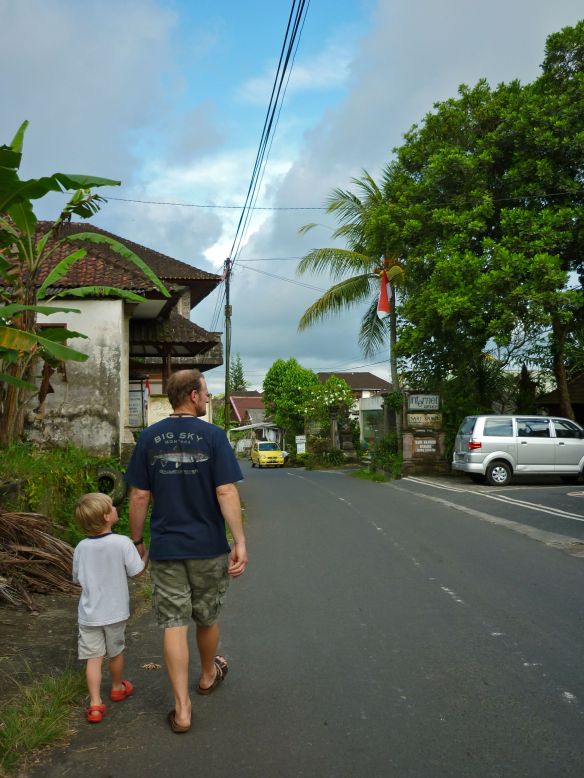 My husband, Kurt, and my son, Eddie, walking along a street in Ubud, Bali.