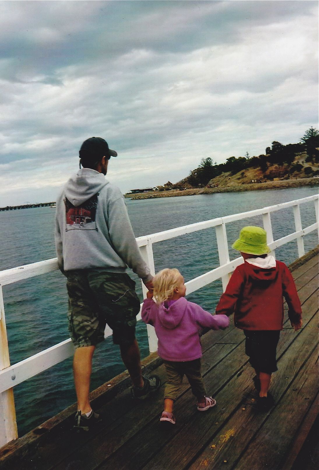 Kurt, Kasey and Eddie walking on a bridge in Victor Habour, South Australia.