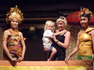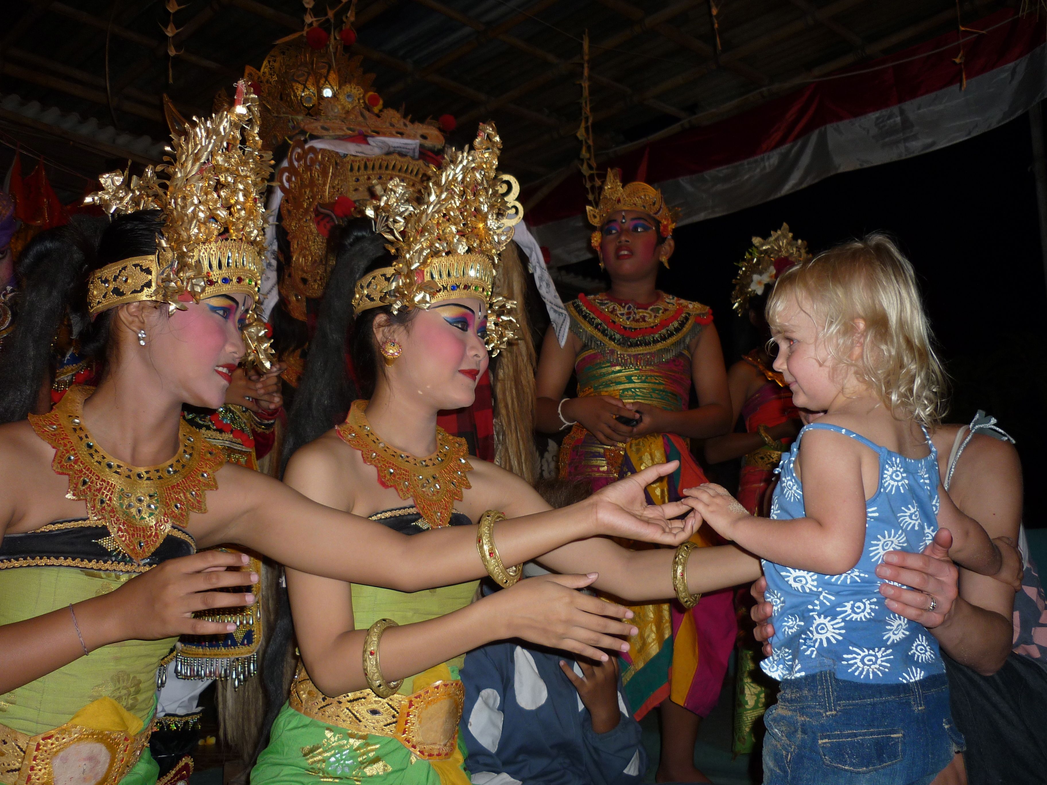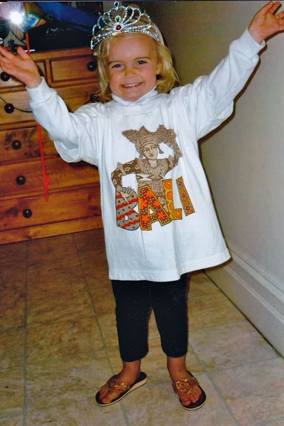 I bought a CD in Sanur and then played it when we returned to Adelaide, where we were living. Even Kurt and Eddie would practice the moves with us and try to re-create scenarios we had seen. Kasey put on her Bali sandals, T-shirt and a tiara from one of her princess costumes. Even two years later, she will listen to the CD and say, “Mom, remember the princesses and the “Big Guy”? Music, of course, is always such a good instigator of memories, too.