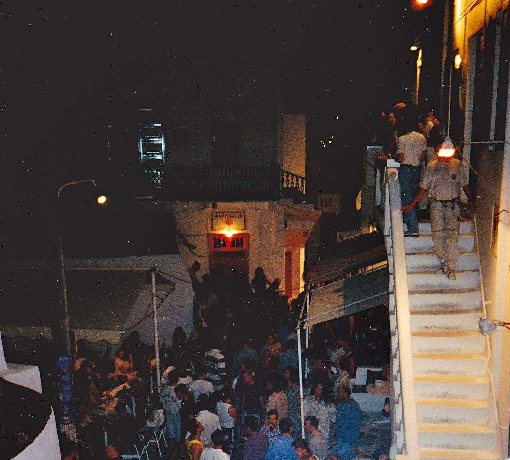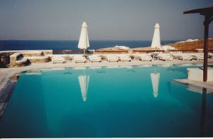 Upon arrival, it’s easy to believe you have money in Mykonos in 1995 — especially when you’ve just found a gorgeous whitewashed pension with cobalt blue trim for $13 a night. It’s got a view of the Aegean Sea, a pool and a toilet. Goats even roam the hills in the background for a quaint, rustic feel.