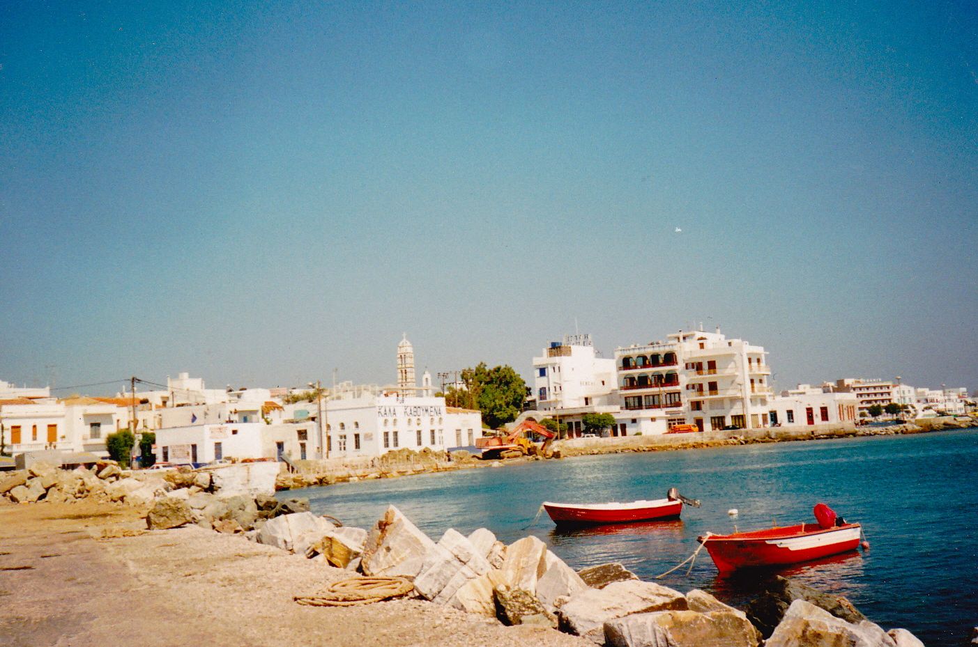 Frankly, Indira and I were just happy to have made it to the island, finally, and to have gotten off the ferry. Three hours earlier, we had actually been to Mykonos, or, at least, the main dock. However, we were still rookies at traveling to the Greek isles by ferry. Otherwise, we would have known to get up to the front and launch ourselves out as soon as the ferry docked. Ultra efficient, the Greek island ferries did not mess around with arrival and departure times.
