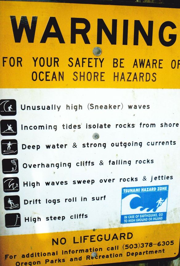 • I hear you on disregarding these signs when it comes to water! We used to swim off the beaches off South Australia, which I’m sure you know, is a favorite for great whites — luckily, I never saw one, but we would see the helicopters flying overhead looking to spot “Jaws” and friends.
