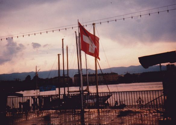 Geneva, Switzerland — a boat behind a gate (I just liked this angle with the flag in the foreground.)