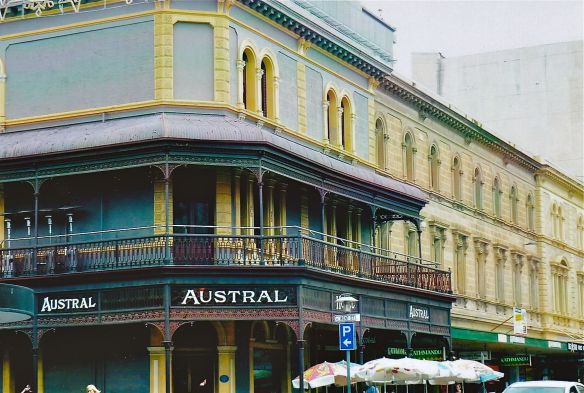 Adelaide, South Australia. The Austral Hotel on Rundle Street always caught my eye whenever I was downtown. Built in the early 1800’s, it is apparently an iconic building in Adelaide, so I’m not the only one whose attention it grabbed. Now it is a popular place to eat, drink and host events.