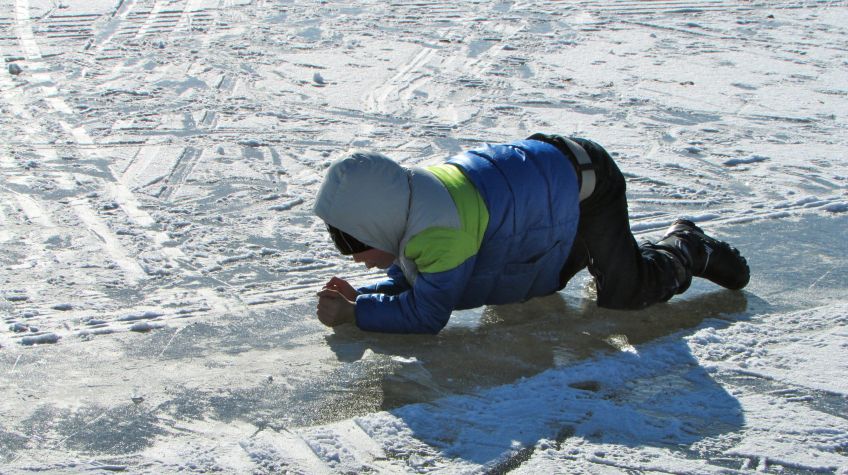 eddie looking at the frozen ice Published December 30, 2012 at 3264 × 1832 in The Travel Ahh….Life on a Frozen Lake © Stephanie Glaser