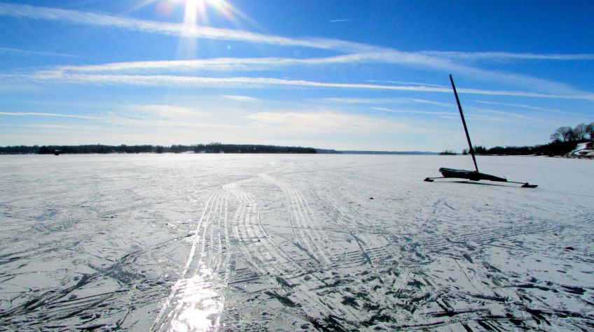 glider on ice with sun Published December 30, 2012 at 3264 × 1832 in The Travel Ahh….Life on a Frozen Lake © Stephanie Glaser