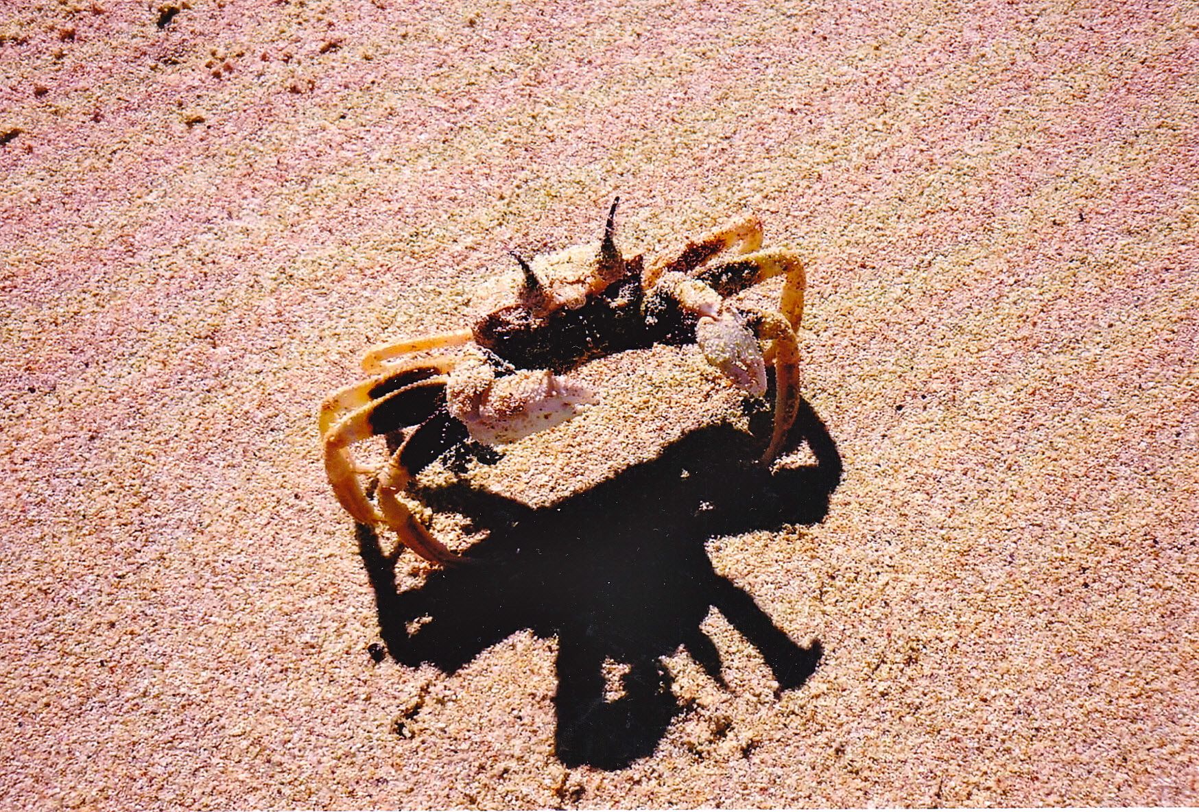 Exmouth, Western Australia. This cute little guy was skittering along the sand.