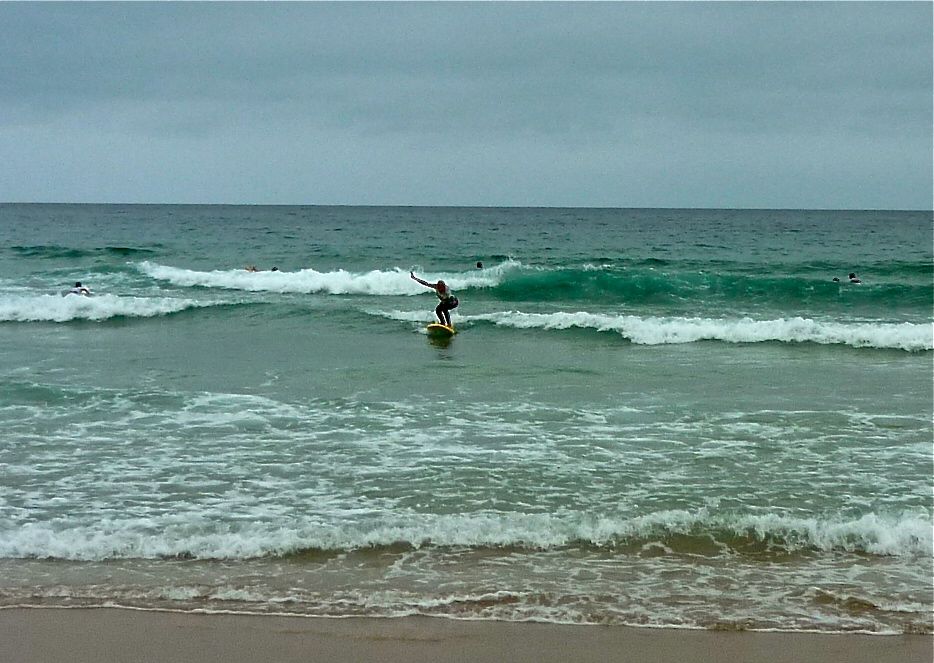 Kurt took this shot of me wearing a Manly Surf School rash guard at the end of the lesson. And I look, manly, indeed! I’m a bit broad-shouldered and I joke about my alter ego, Helga, the East German swimmer. Actually, I think I look a bit more like a less bulky Fabio with a shirt on.