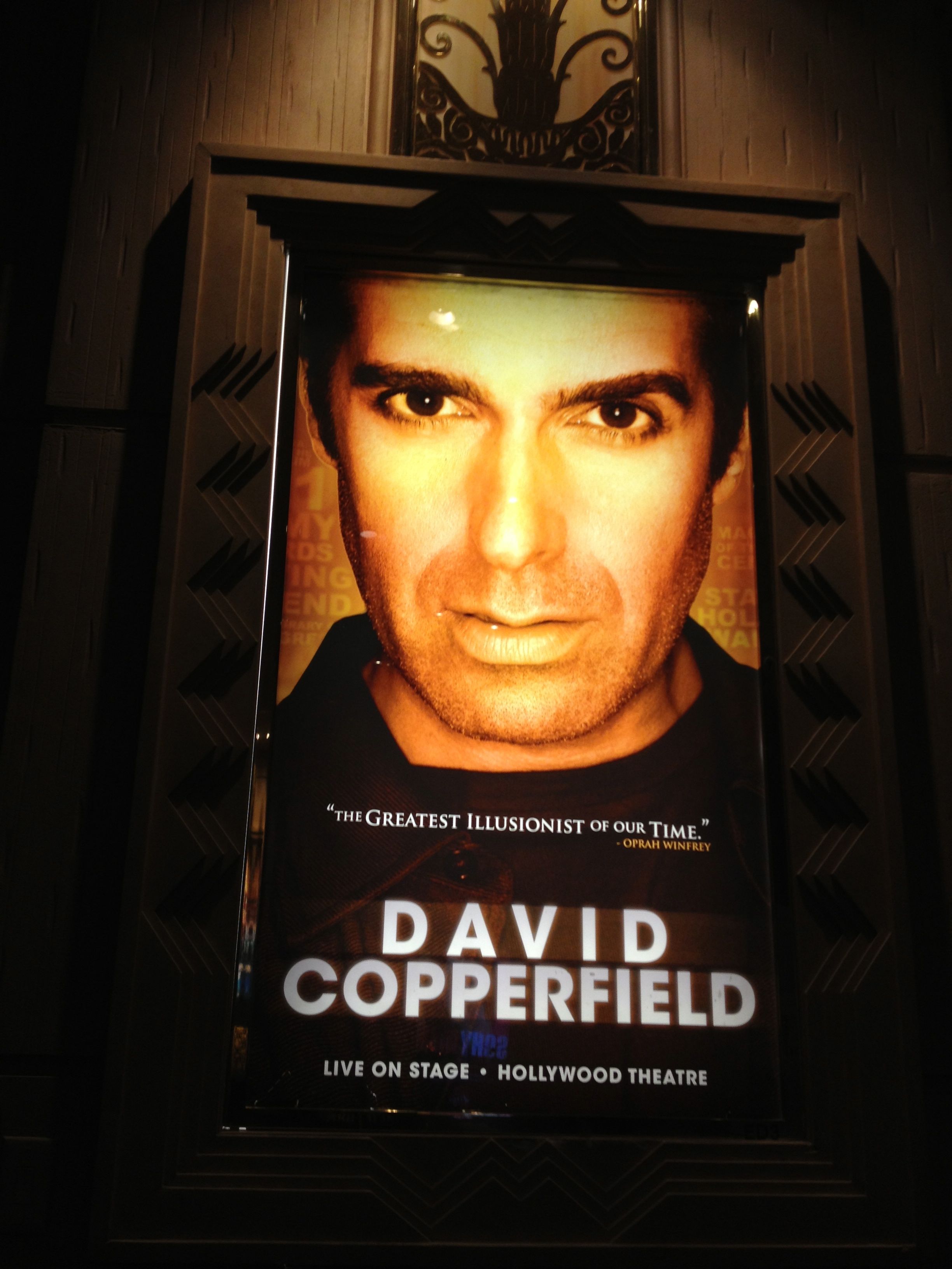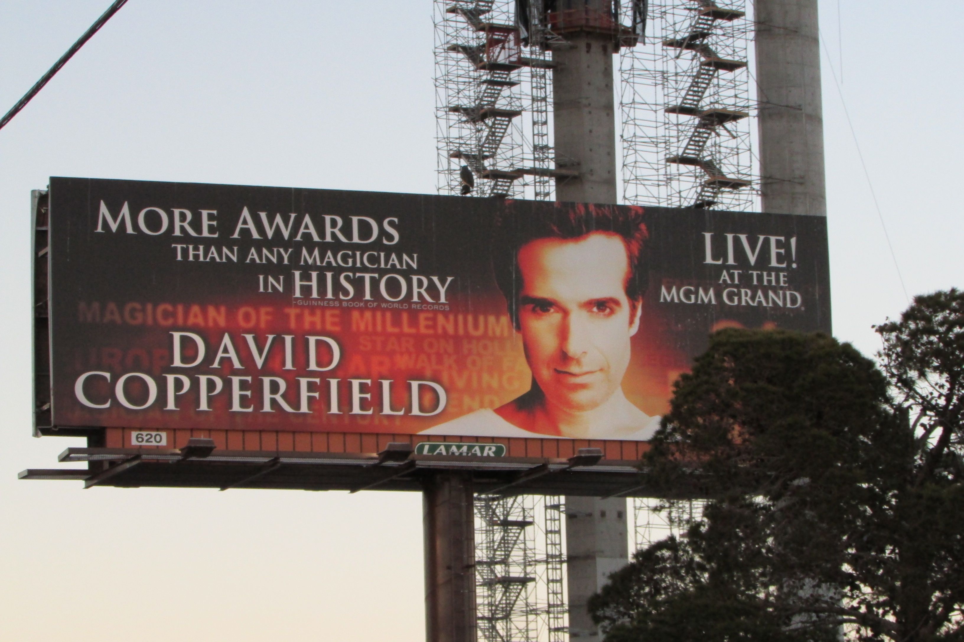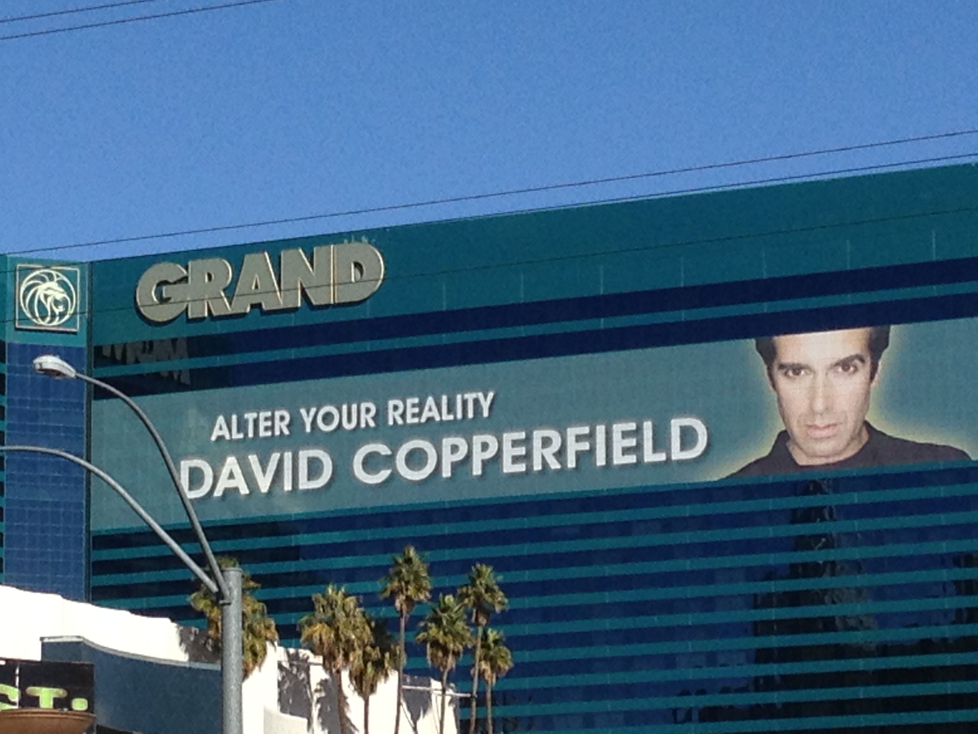 Currently he is booked at the MGM Grand, but he is everywhere in LV. At least his eyes are. If you thought the Mona Lisa’s eyes look everywhere, remember she is 30″ by 20 7/8″ and kept behind a glass case. David Copperfield is emblazoned on several sides of a very large building. He’s also on posters, billboards and cabs. So he stalks you with his unsettling stare.
