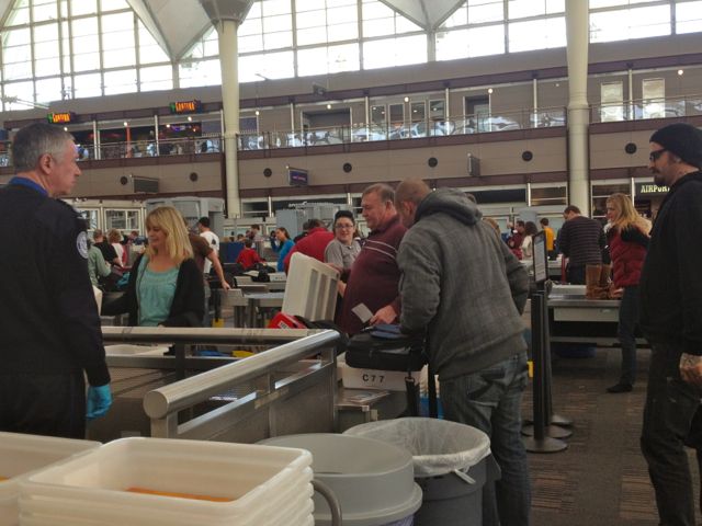 Despite arriving early with plenty of time, not surprisingly, our stress levels rose at security. Kurt’s bag was stopped (it initially had made it through Denver International Airport with no problems).