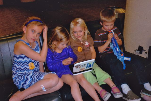 The kids at the Phoenix Airport before our flight to Mexico. Notice Eddie with his guns. © Stephanie Glaser 2011
