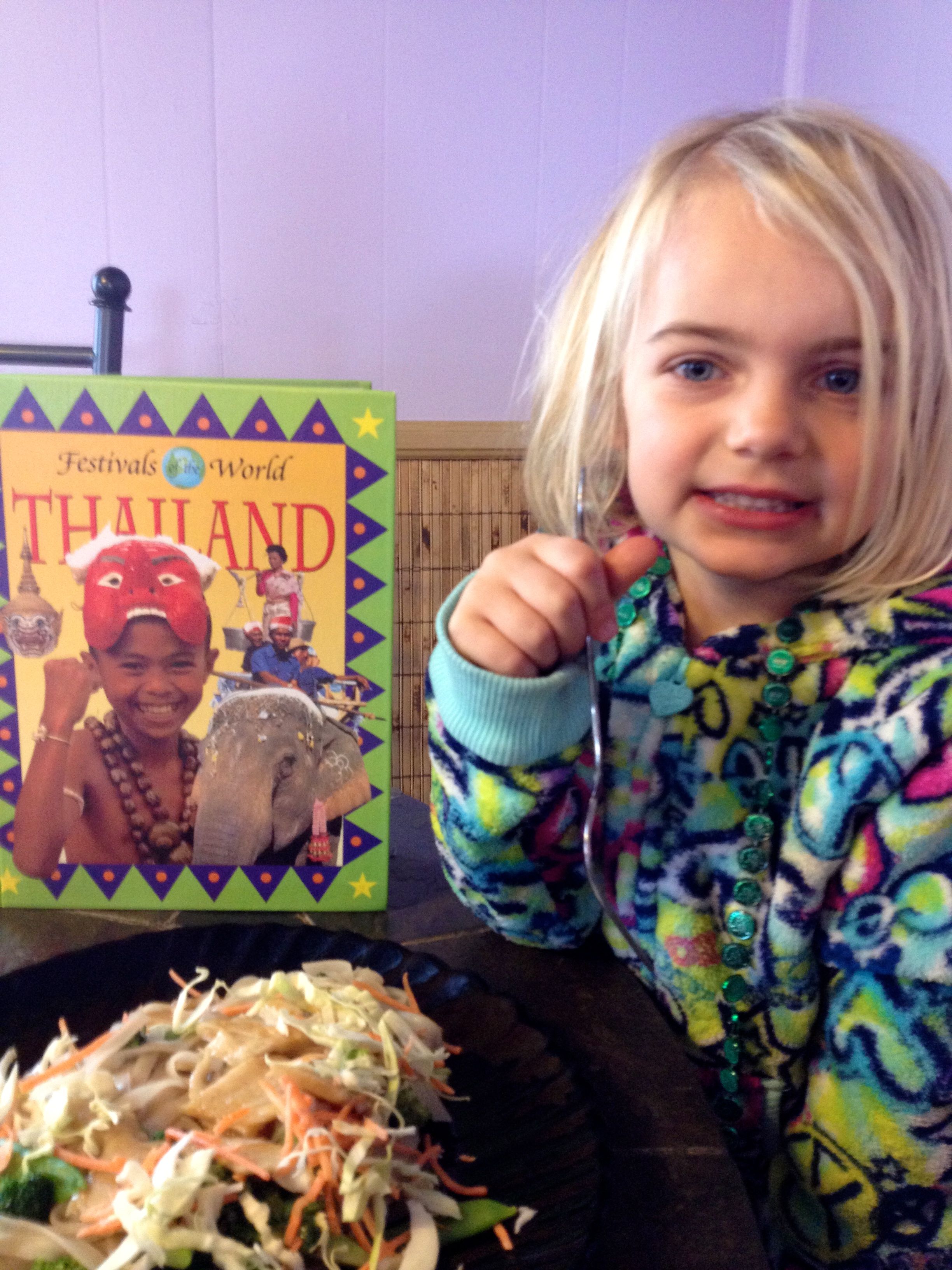 Also, I need to satisfy my own desire to travel — especially to Asia. On a typical Culture Day, we go to our local library and check out books on a selected nation.  Then we visit a restaurant to eat that particular country’s cuisine while we look at the books. We usually talk to the owner(s) and learn how  to say “please”, “thank you”, and “yummy.”