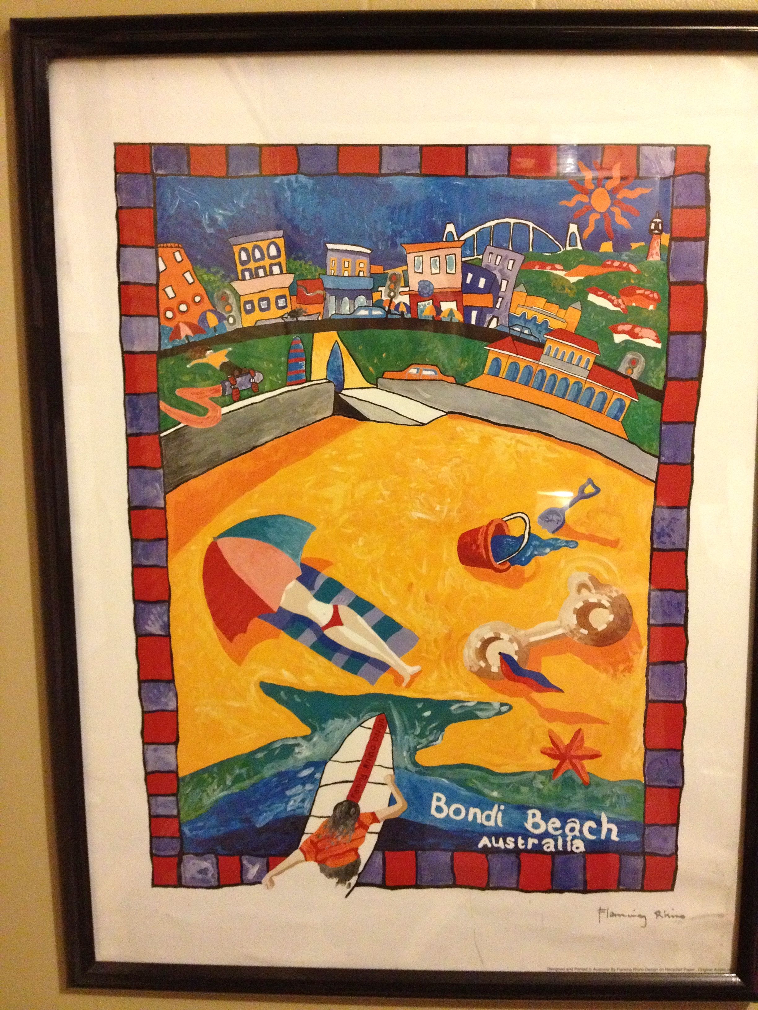 Because of my penchant for posters, I checked out the Pavillion at Bondi Beach on our last full day in Australia.  “I’ll be back,” I told Kurt. “Kasey needs to use the toilet.” The story was true although Kurt guessed that I was using our daughter’s small bladder as an excuse to get souvenirs.