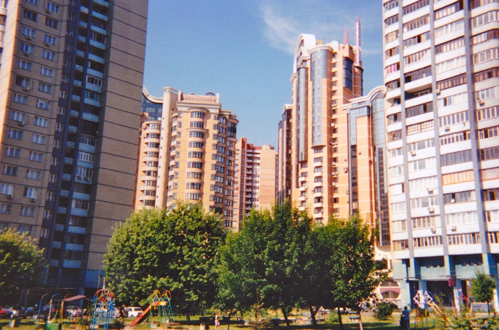 Cars parked pretty randomly on this street in Kiev. 2006