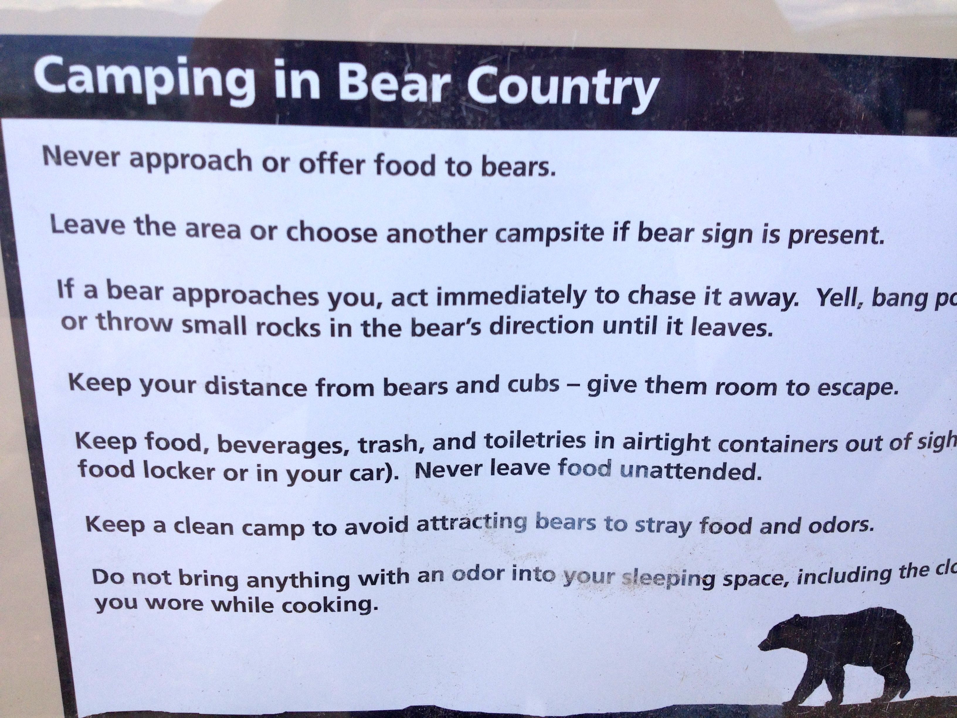 Utah and Colorado. Wildlife is great and all, and who doesn’t want to see animals in their natural habitat? There is something disconcerting, however, when you see these kinds of signs in the areas you will be camping or hiking. It’s even worse that the advice they post is pretty dang ridiculous — in that you’d actually be able to perform these death prevention techniques.