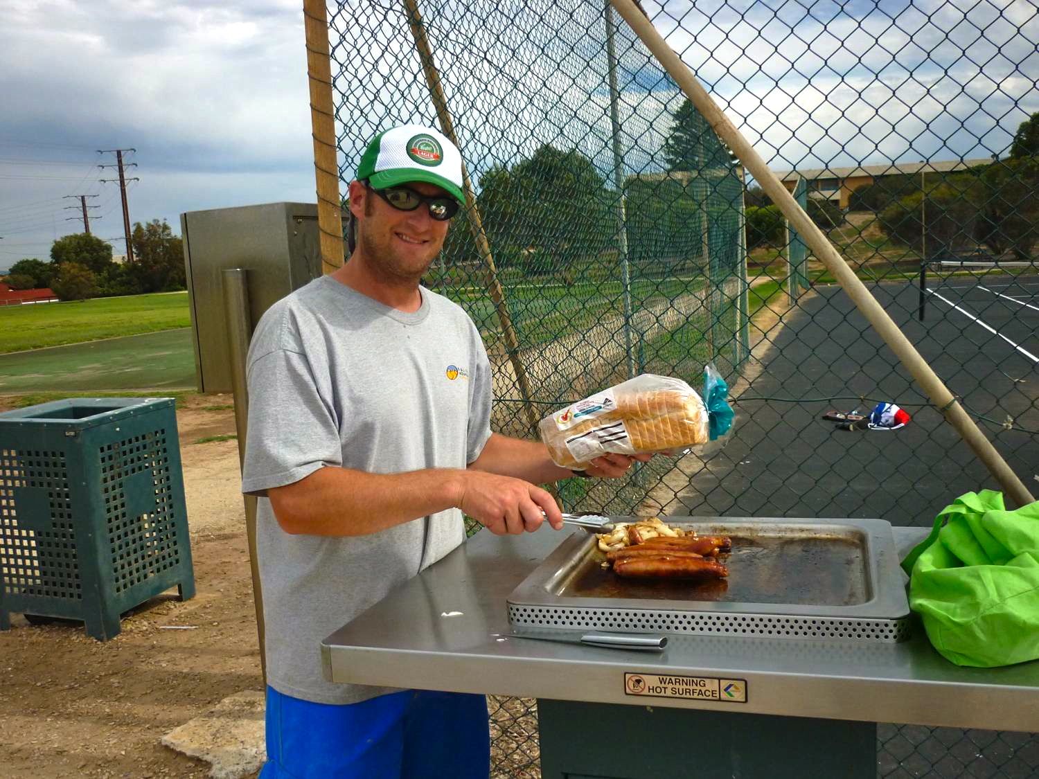 Kurt getting sausages ready for some runny ketchup.
