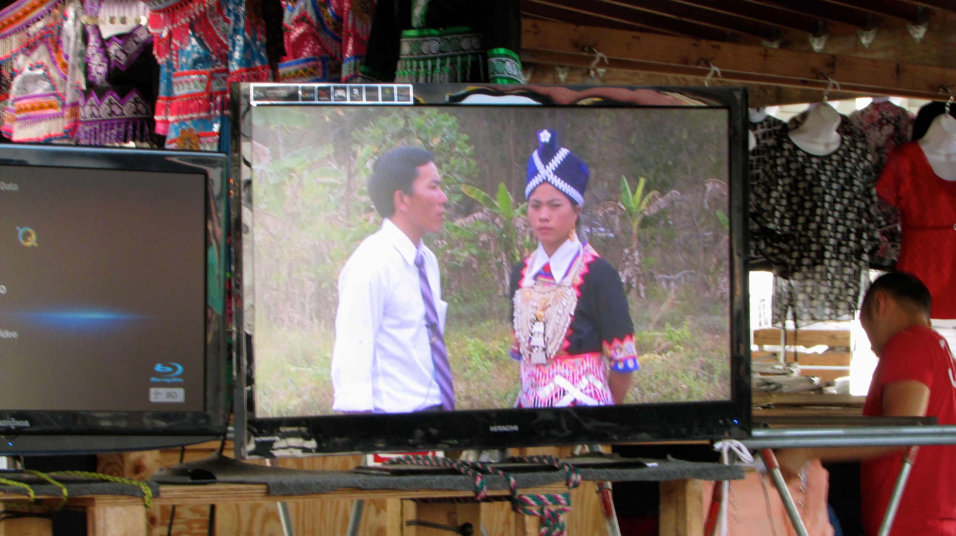 A large poster advertising the video, “Miss Hmong,” dominated one shop. While I didn’t know the story, based on the main image, Miss Hmong, dressed in an elaborate blue silk embroidered costume with a headdress that looked somewhat like a lampshade was being carried by a guy who looked like he was either in the Laotian version of the Eagle Scouts or he was in a lower socio economic group. The peasant-looking guy seemed to be rescuing Miss Hmong, who was all smiles — a rich girl meets poor boy story, perhaps.