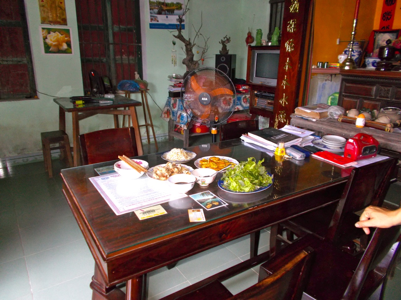 Later in the trip, Deb and I discovered that karaoke was a pastime for all ages when we visited our friend Silk’s aunt and uncle. In a Zenish setting in beautiful Hoi An, we ate a traditional Vietnamese lunch at the house that Silk’s uncle designed and built.