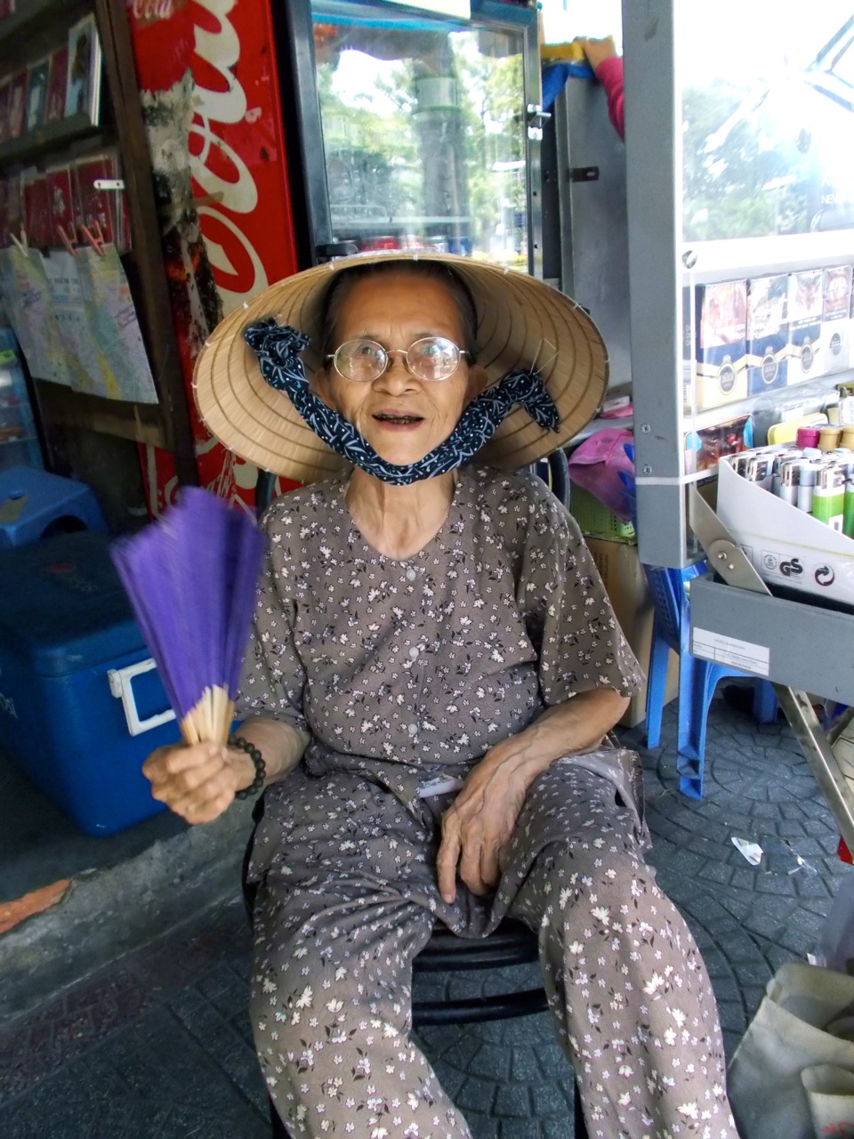 It’s hard to tell, but this woman has a black coating on her teeth, which was once quite fashionable in Vietnam. I mistakenly thought she had rotten teeth, but I read about the teeth blackening practice at the Women’s Museum in Hanoi.