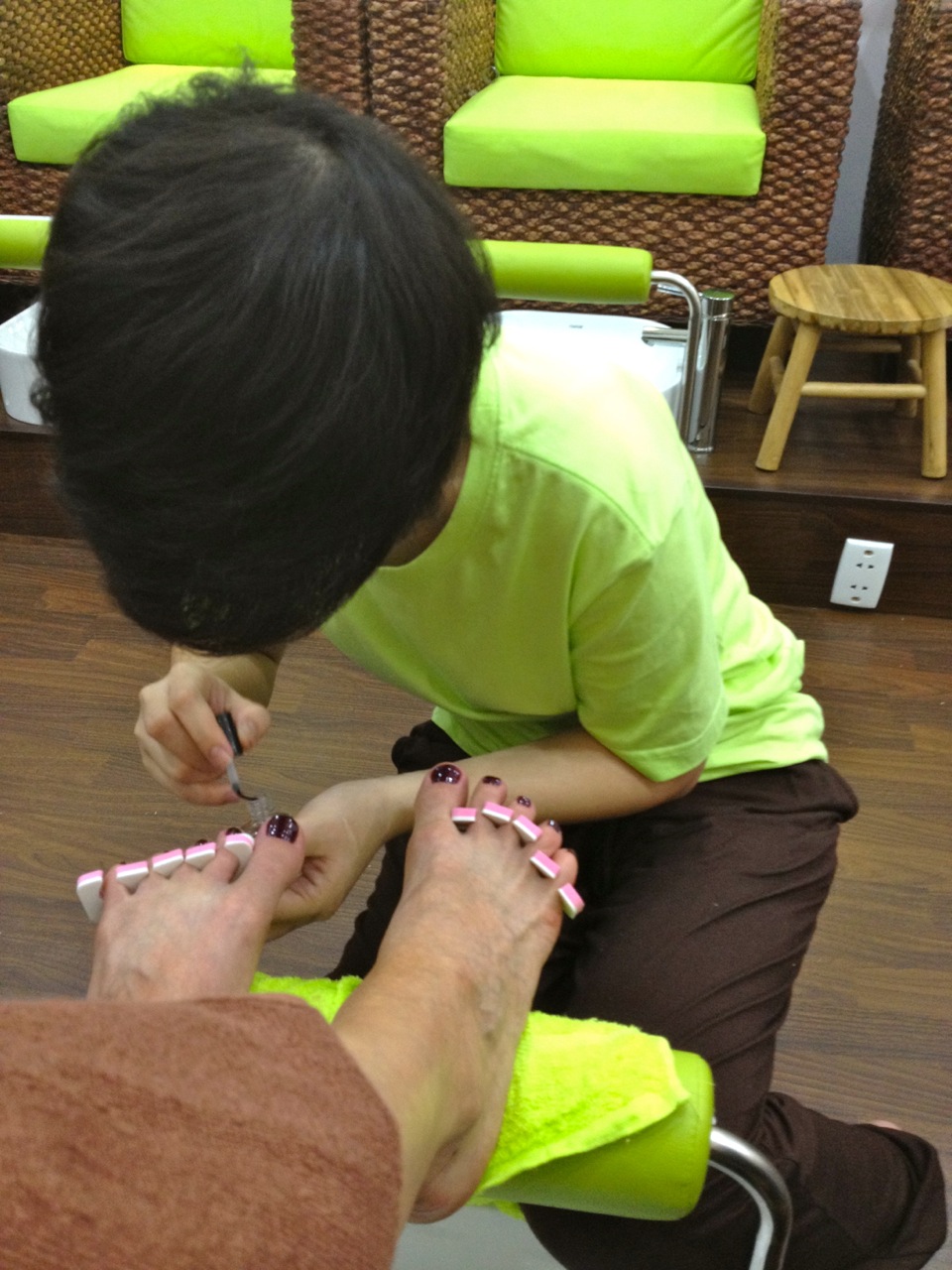 Even Tam had mentioned that when looking at economic factor and providing for families, ultimately, feet become a minor issue. In fact, I looked down at my already polished toes and wondered if I should pay to have them redone and whether there was a golden bowl of lotus flowers I could soak them in.
