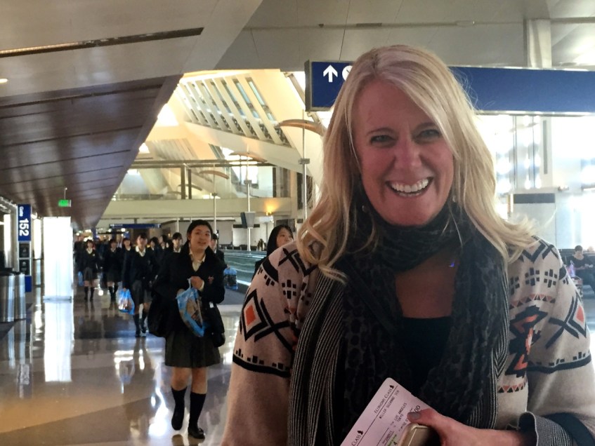 Suz with army behind her Published December 15, 2015 at 1280 × 960 in Being Ballers at LAX (on our Way to Asia) The army mobilizes. This time, however, we are in front of the line.