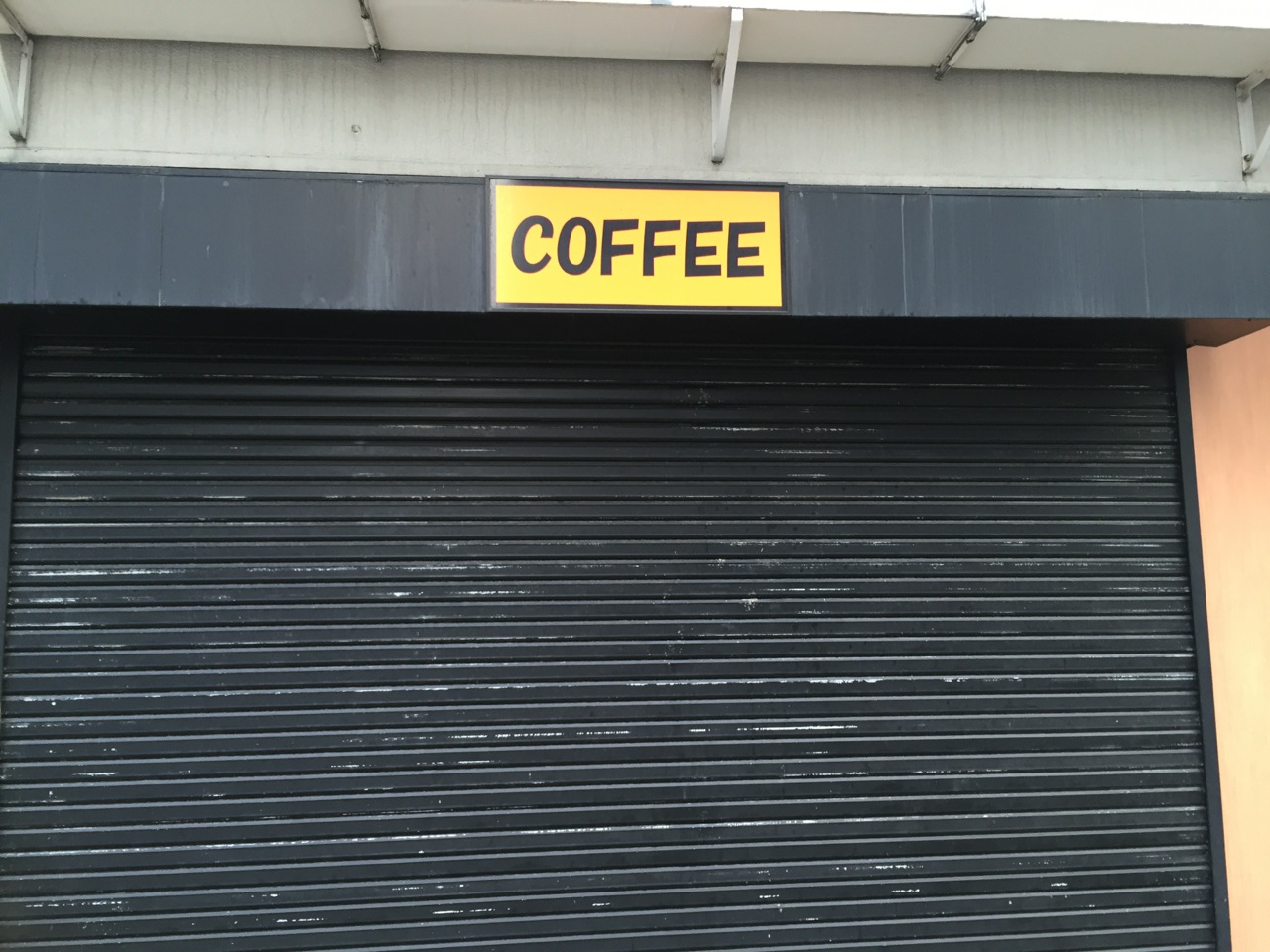 Closed coffee shop corrugated door Published March 27, 2016 at 1280 × 960 in Mornings in the Land of the Rising Sun — “Where is everybody?”