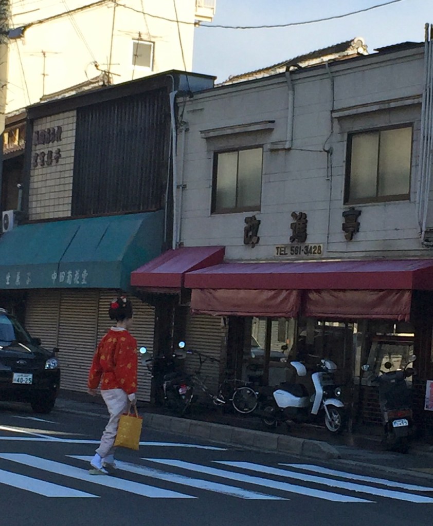 geisha crossing street further away Published March 27, 2016 at 1052 × 1280 in Mornings in the Land of the Rising Sun — “Where is everybody?”
