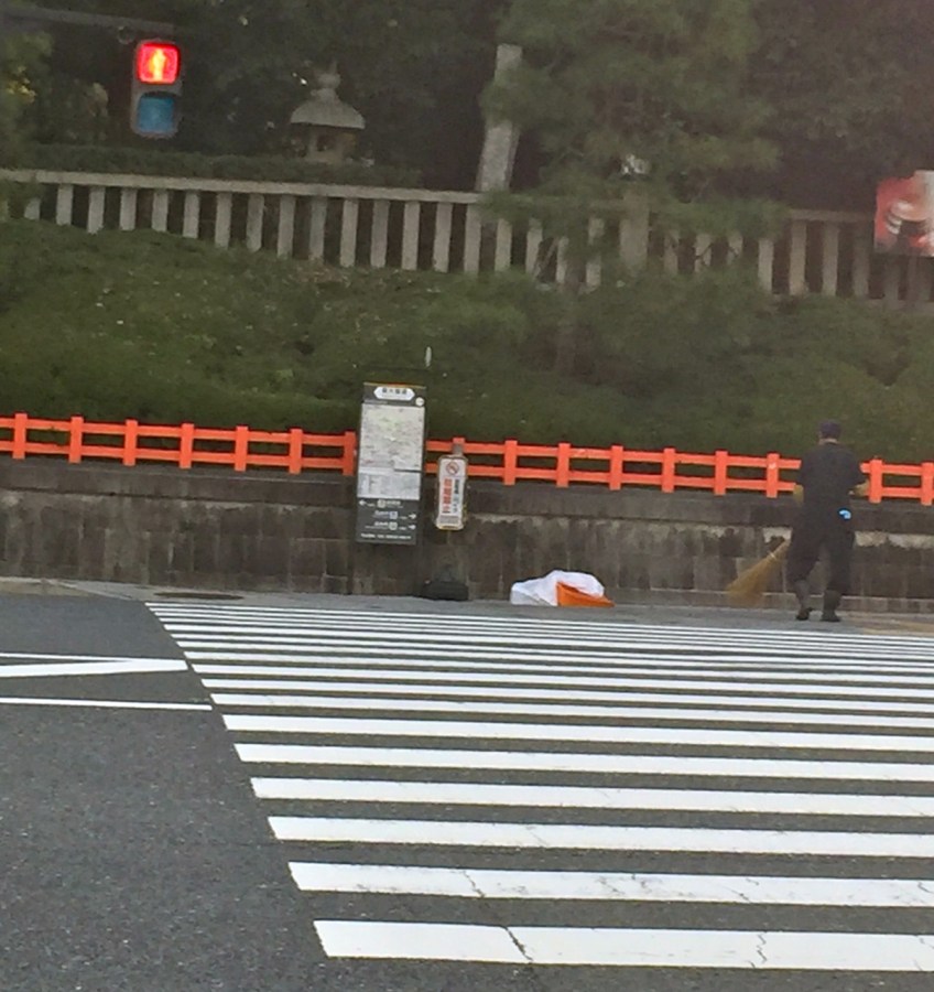 Street sweeper near temple Published March 27, 2016 at 1205 × 1280 in Mornings in the Land of the Rising Sun — “Where is everybody?”