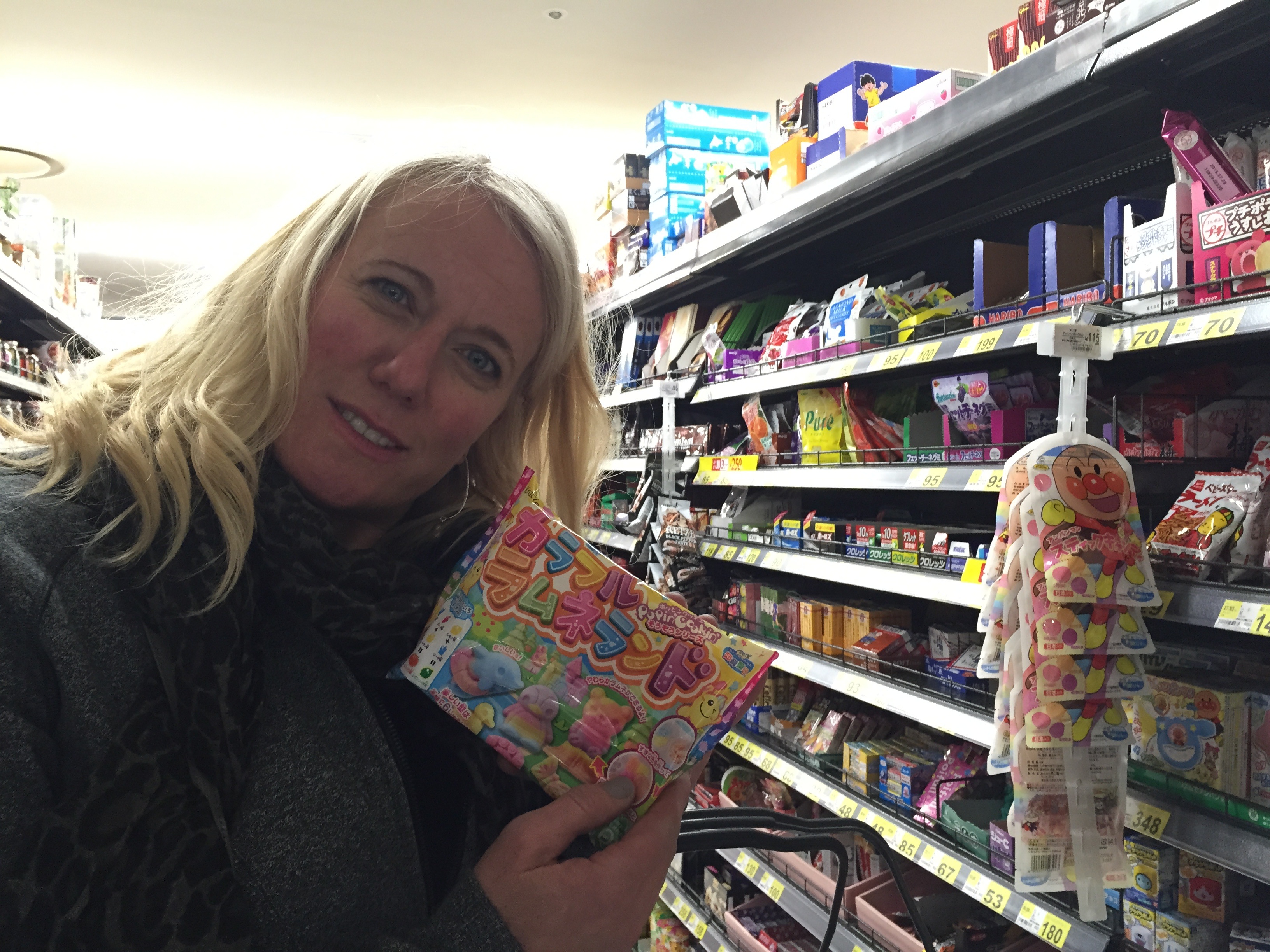 Suz with candies in Rox Published July 19, 2016 at 3264 × 2448 in Discoveries in the whimsical, swirly, Technicolor, mystifying, sweet, savory, wacky land of wonder that is Japan My sister Suzanne with some of the many mystifying candies in a Japanese grocery store.