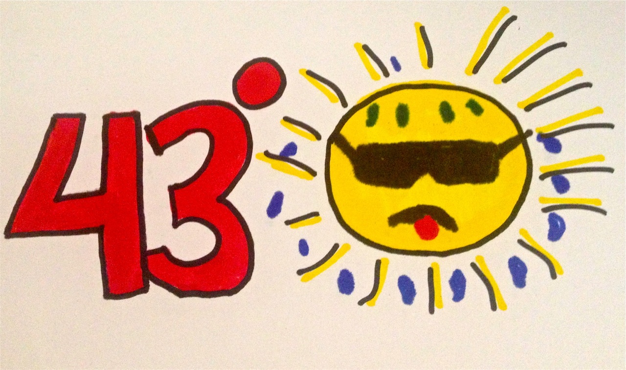 Wearing sunglasses and spouting sweat droplets, a bright yellow sun icon panted as it hovered over Adelaide, South Australia on the weather map. Accompanying the sun, a red numeral forty-three pulsated near one of the sweat drops. It was forty-three degrees Celsius to be precise.